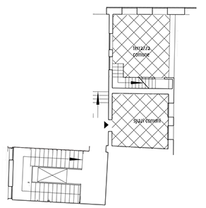 Dall'ingresso si accede alle scale e all'ascensore montacarichi che porta direttamente ai i quattro appartamenti al secondo e ultimo